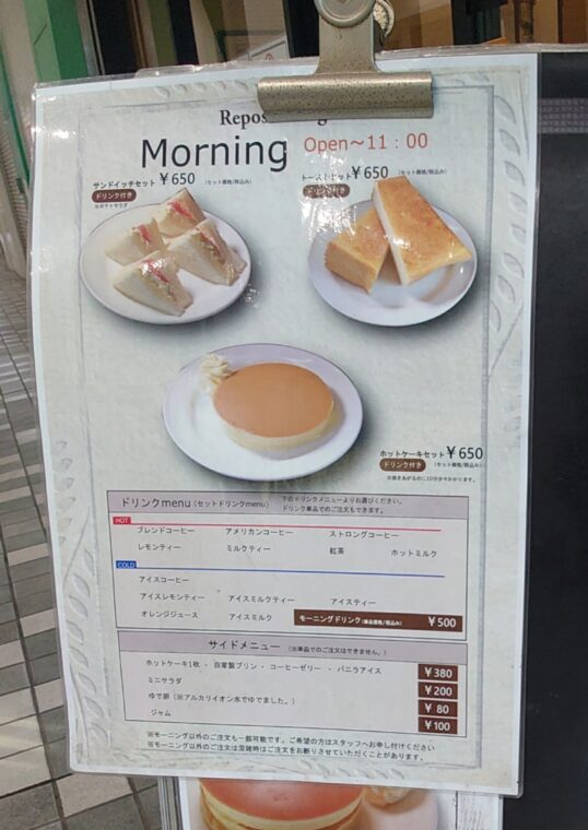 ルポーゼすぎのモーニングとメニュー